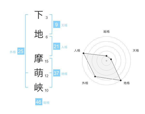 下地 摩萌峡さんを姓名の画数から五運を鑑定