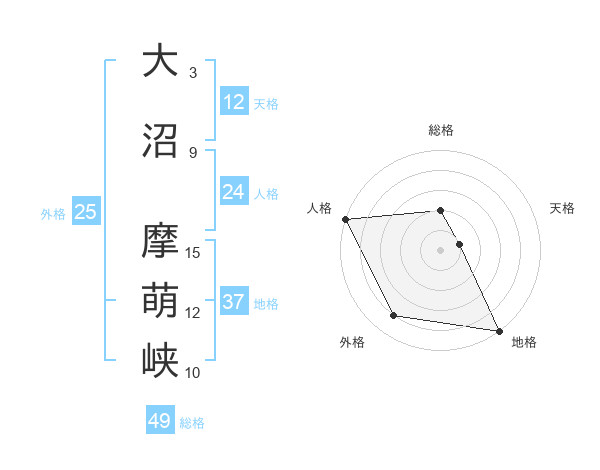 大沼 摩萌峡さんを姓名の画数から五運を鑑定
