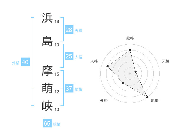 浜島 摩萌峡さんを姓名の画数から五運を鑑定