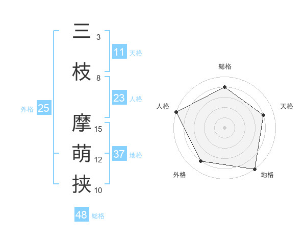 三枝 摩萌挟さんを姓名の画数から五運を鑑定