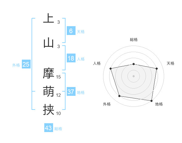 上山 摩萌挟さんを姓名の画数から五運を鑑定