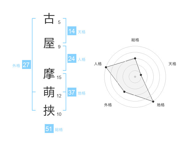 古屋 摩萌挟さんの総格は51画の3点!
