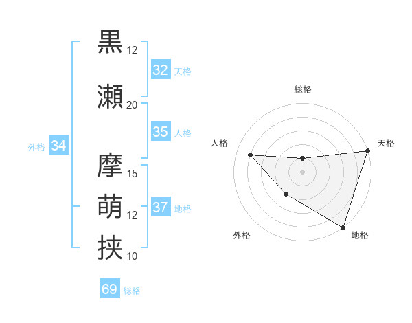 黒瀬 摩萌挟さんの天格は32画の5点!
