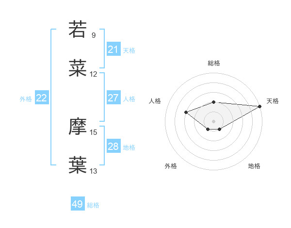 若菜 摩葉さんの天格は21画の5点!