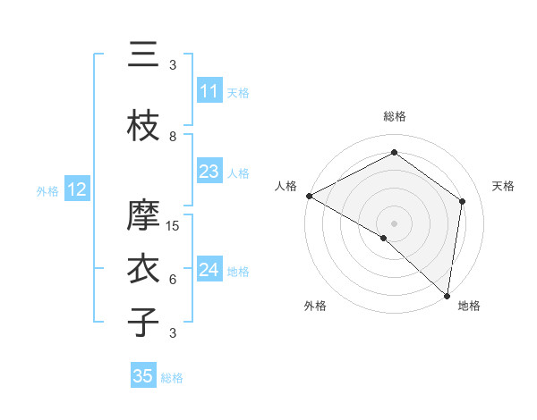 三枝 摩衣子さんを姓名の画数から五運を鑑定