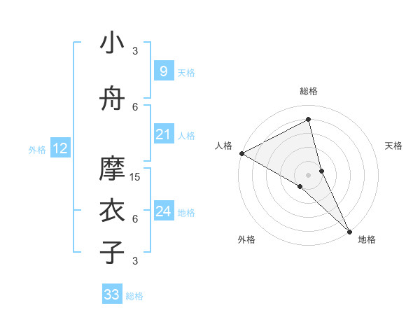 小舟 摩衣子さんを姓名の画数から五運を鑑定