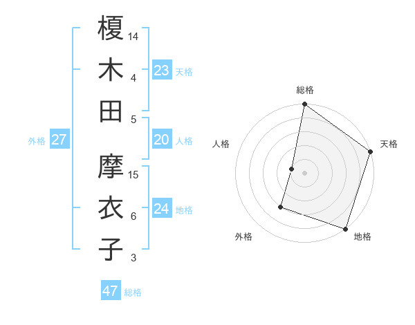 榎木田 摩衣子さんを姓名の画数から五運を鑑定