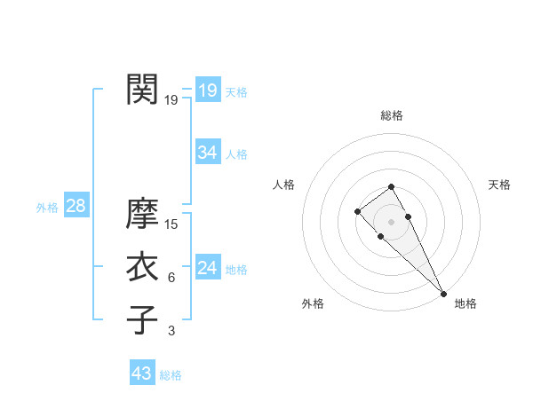 関 摩衣子さんの天格は19画の1点!