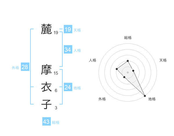 麓 摩衣子さんの天格は19画の1点!