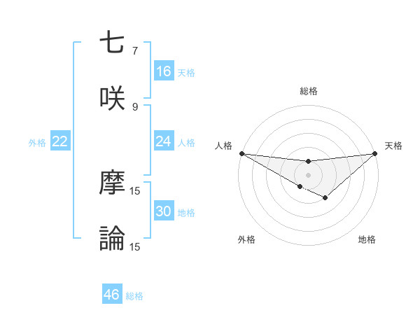 七咲 摩論さんを姓名の画数から五運を鑑定