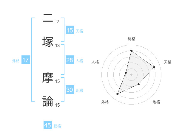 二塚 摩論さんの天格は15画の4点!