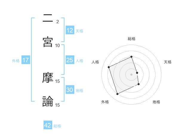 二宮 摩論さんを姓名の画数から五運を鑑定