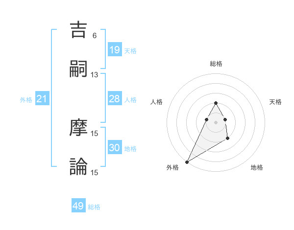 吉嗣 摩論さんの外格は21画の5点!