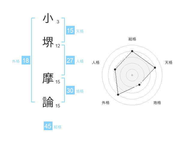 小堺 摩論さんの天格は15画の4点!