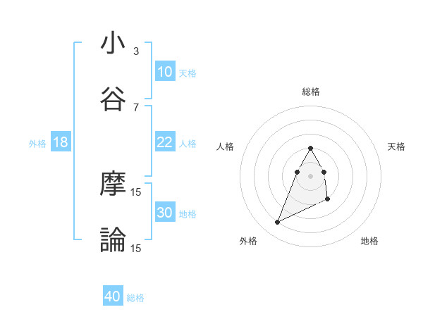 小谷 摩論さんを姓名の画数から五運を鑑定