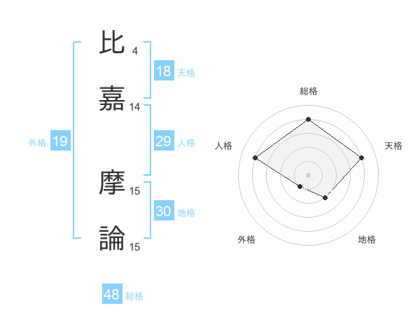 比嘉 摩論さんの総格は48画の4点!