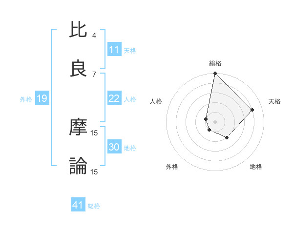 比良 摩論さんの総格は41画の5点!