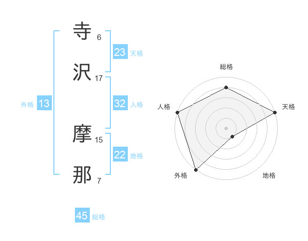 寺沢 摩那さんを姓名の画数から五運を鑑定