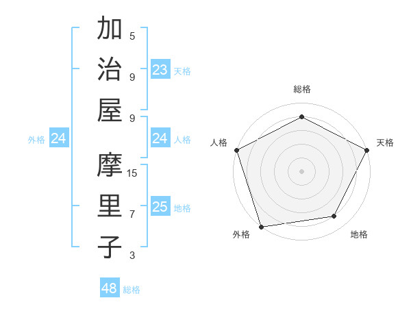 加治屋 摩里子さんを姓名の画数から五運を鑑定