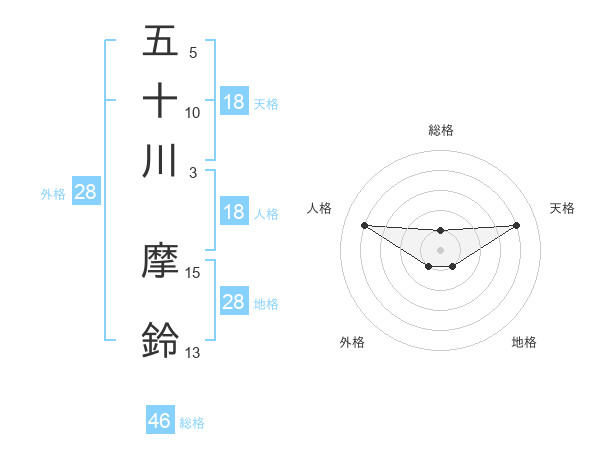 五十川 摩鈴さんを姓名の画数から五運を鑑定