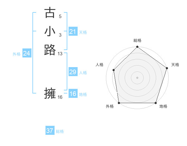 古小路 擁さんの地格は16画の5点!