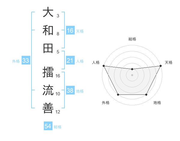 大和田 擂流善さんを姓名の画数から五運を鑑定
