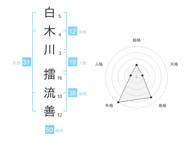 白木川 擂流善さんを姓名の画数から五運を鑑定