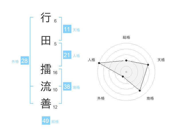 行田 擂流善さんを姓名の画数から五運を鑑定