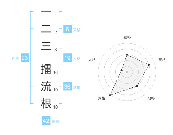 一二三 擂流根さんを姓名の画数から五運を鑑定