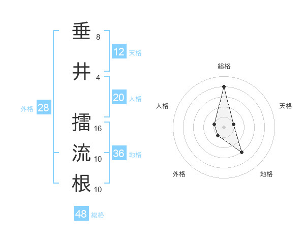 垂井 擂流根さんの総格は48画の4点!