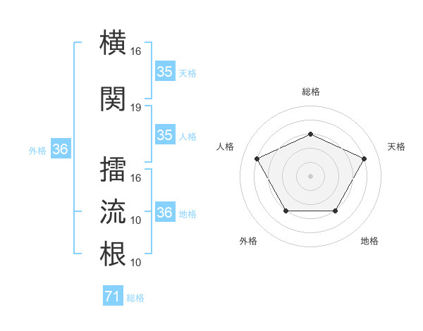 横関 擂流根さんを姓名の画数から五運を鑑定