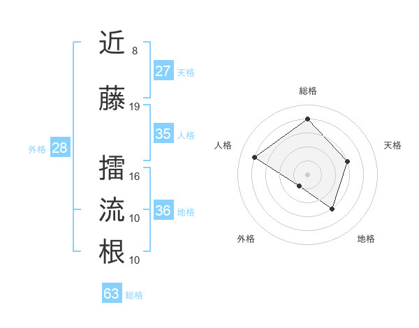 近藤 擂流根さんを姓名の画数から五運を鑑定