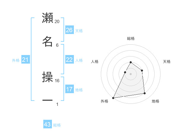 瀬名 操一さんの総格は43画の2点!