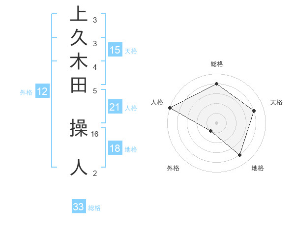 上久木田 操人さんを姓名の画数から五運を鑑定