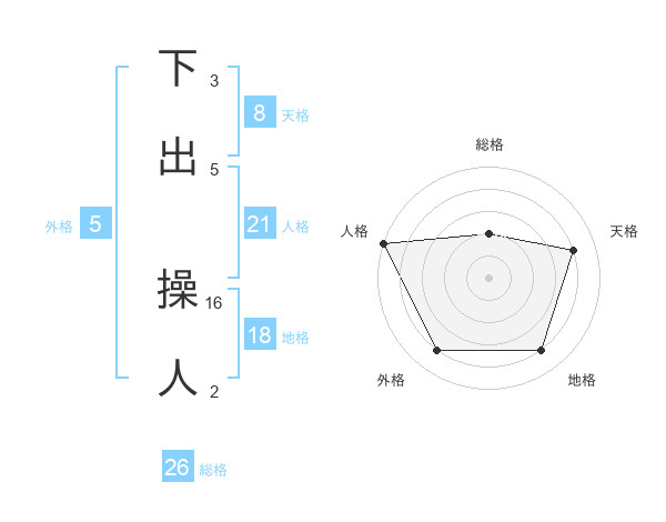 下出 操人さんの天格は8画の4点!