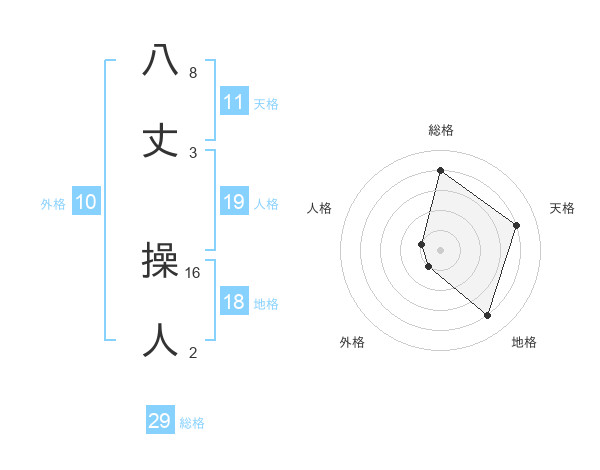 八丈 操人さんの総格は29画の4点!