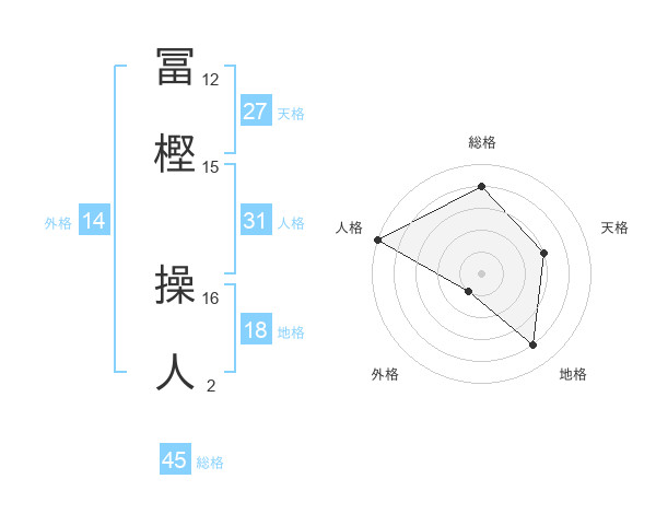 冨樫 操人さんの総格は45画の4点!