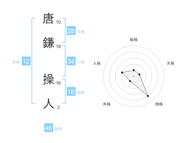 唐鎌 操人さんの総格は46画の1点!