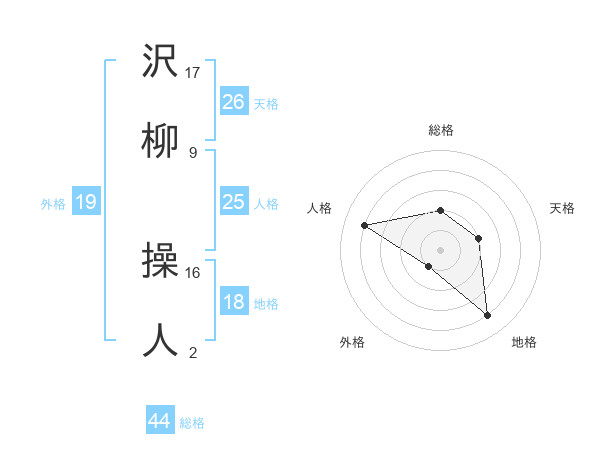 沢柳 操人さんの外格は19画の1点!