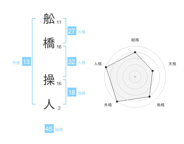 舩橋 操人さんの外格は13画の5点!