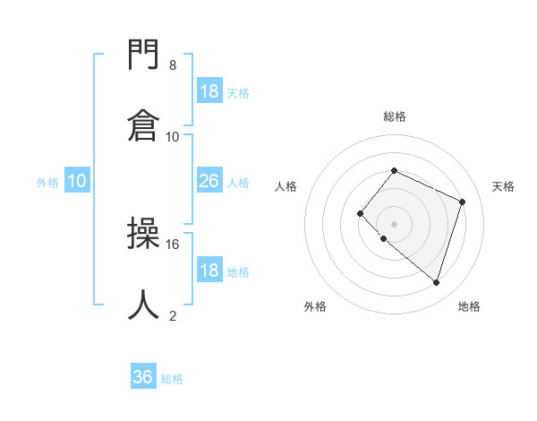 門倉 操人さんの天格は18画の4点!