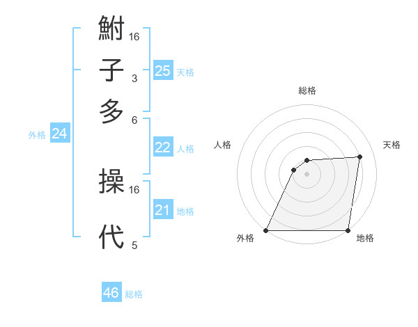 鮒子多 操代さんを姓名の画数から五運を鑑定