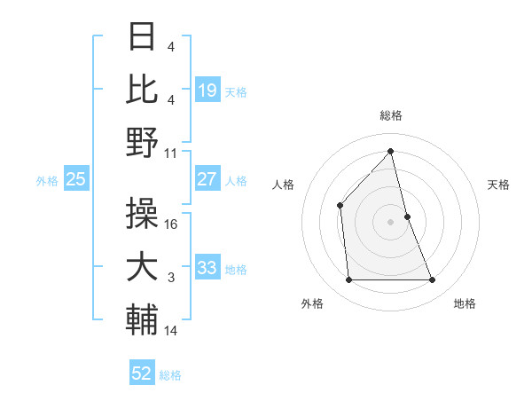 日比野 操大輔さんを姓名の画数から五運を鑑定