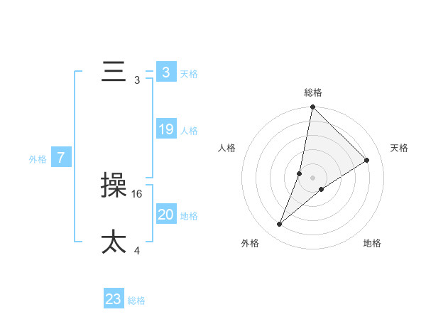 三 操太さんの総格は23画の5点!