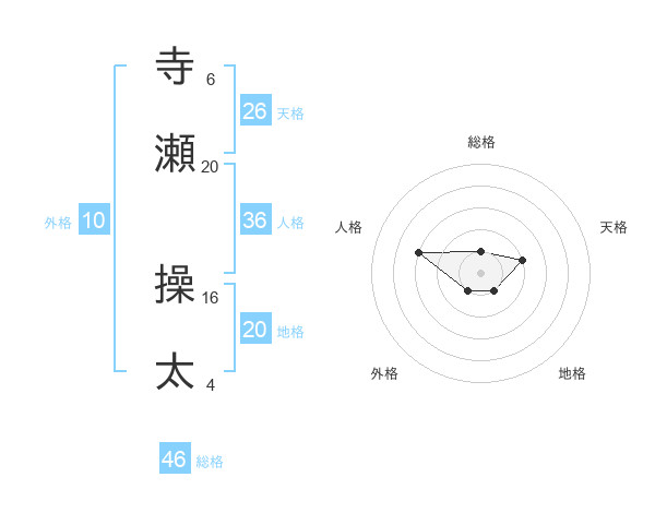 寺瀬 操太さんの総格は46画の1点!