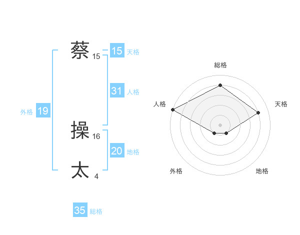 蔡 操太さんの天格は15画の4点!