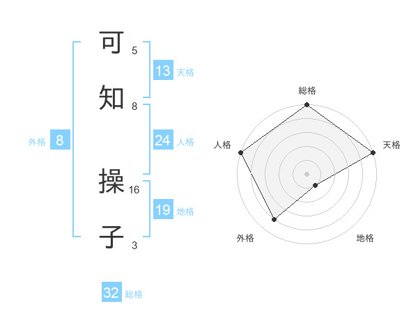 可知 操子さんの天格は13画の5点!