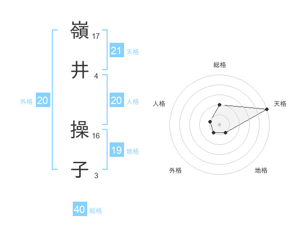 嶺井 操子さんの天格は21画の5点!