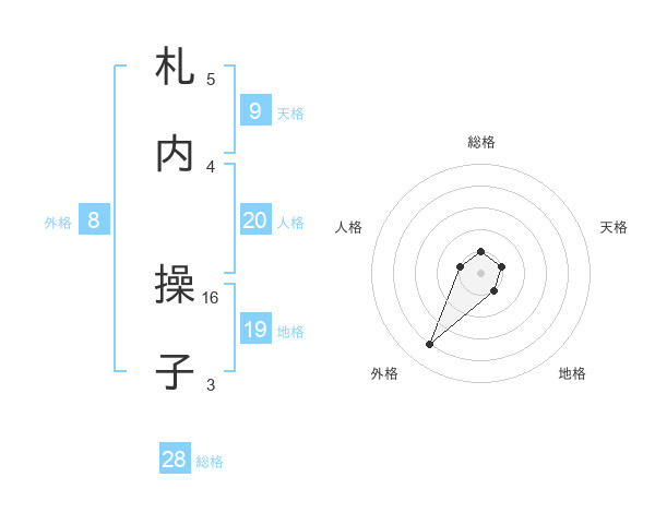 札内 操子さんの総格は28画の1点!