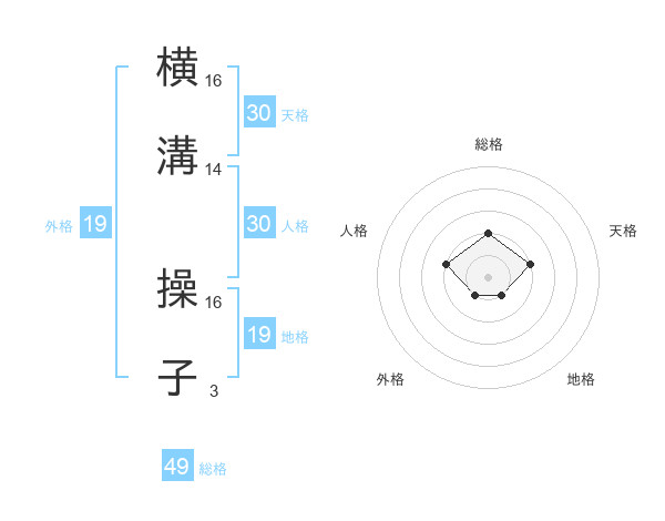 横溝 操子さんの総格は49画の2点!